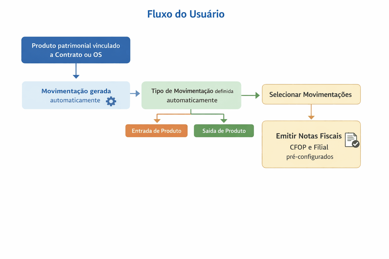 Eu queria entender o porquê da necessidade da nota fiscal. O valor não era "emitir nota", era controlar rastreabilidade do equipamento. Isso ajudou na definição da interface e dos status.