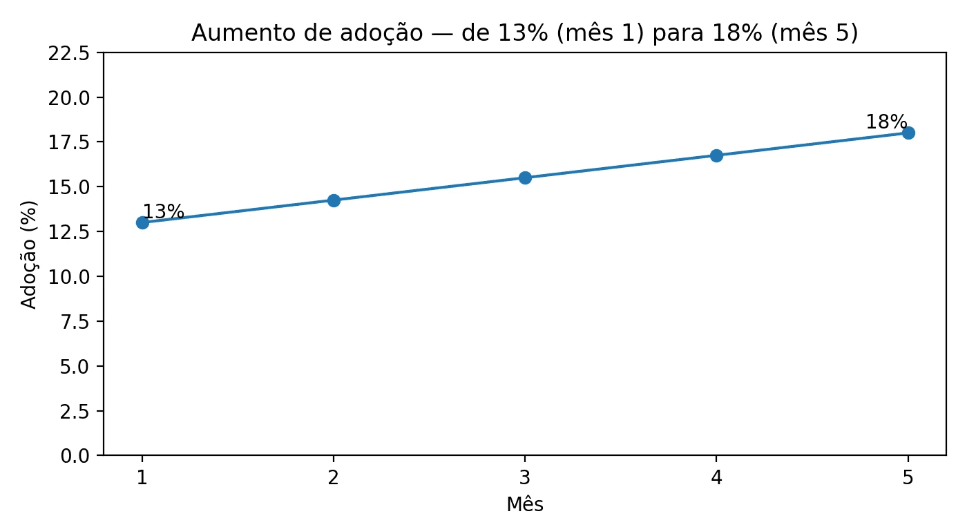 Adoção: 13% → 18% em 5 meses